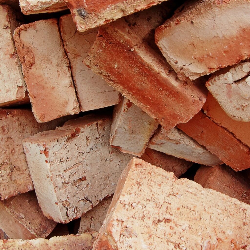 Disposal of segregated bricks from deconstruction projects. Bricks crushed and recycled on site are then reused as fill for road base, drainage material or as fill sand.